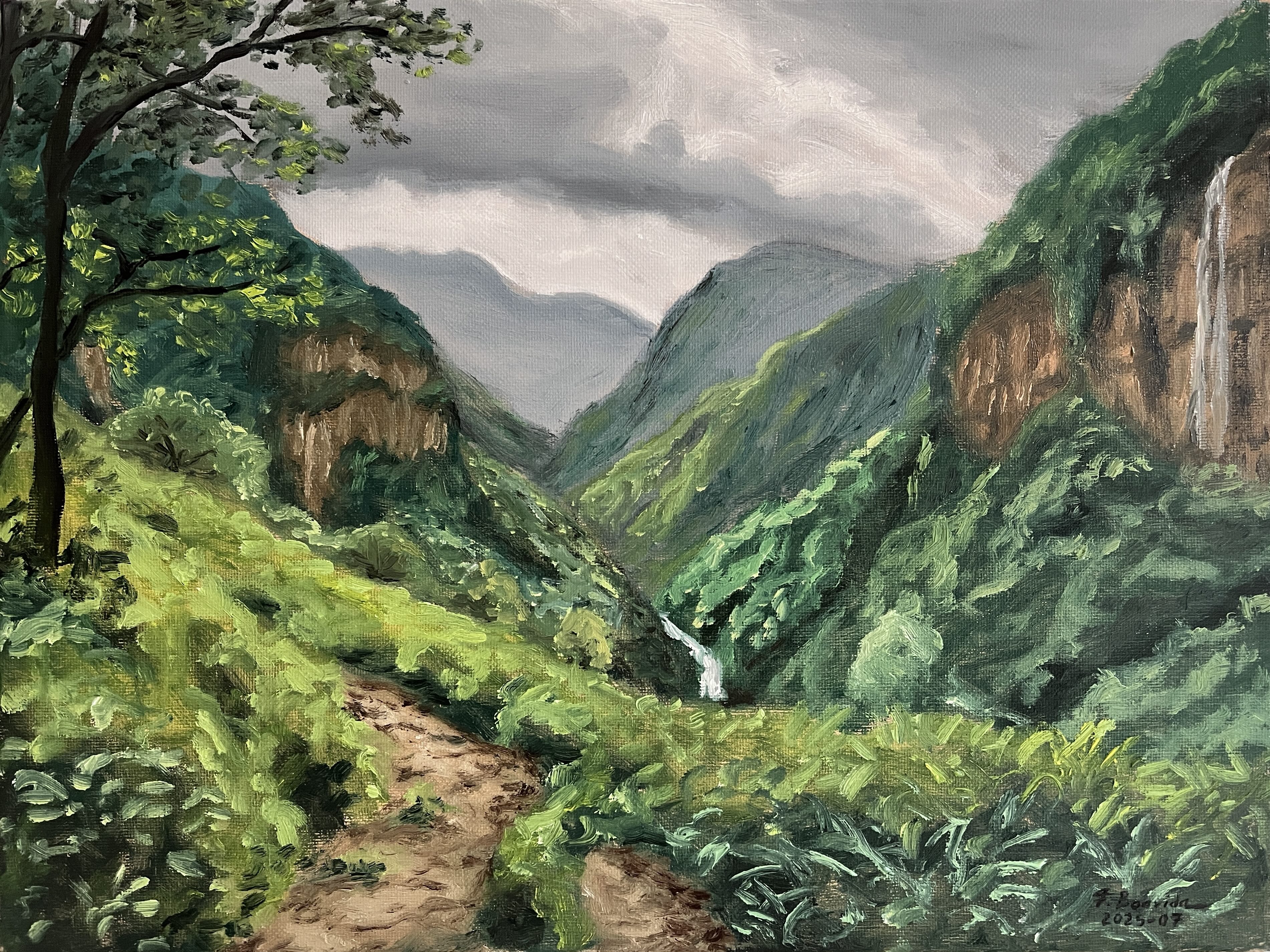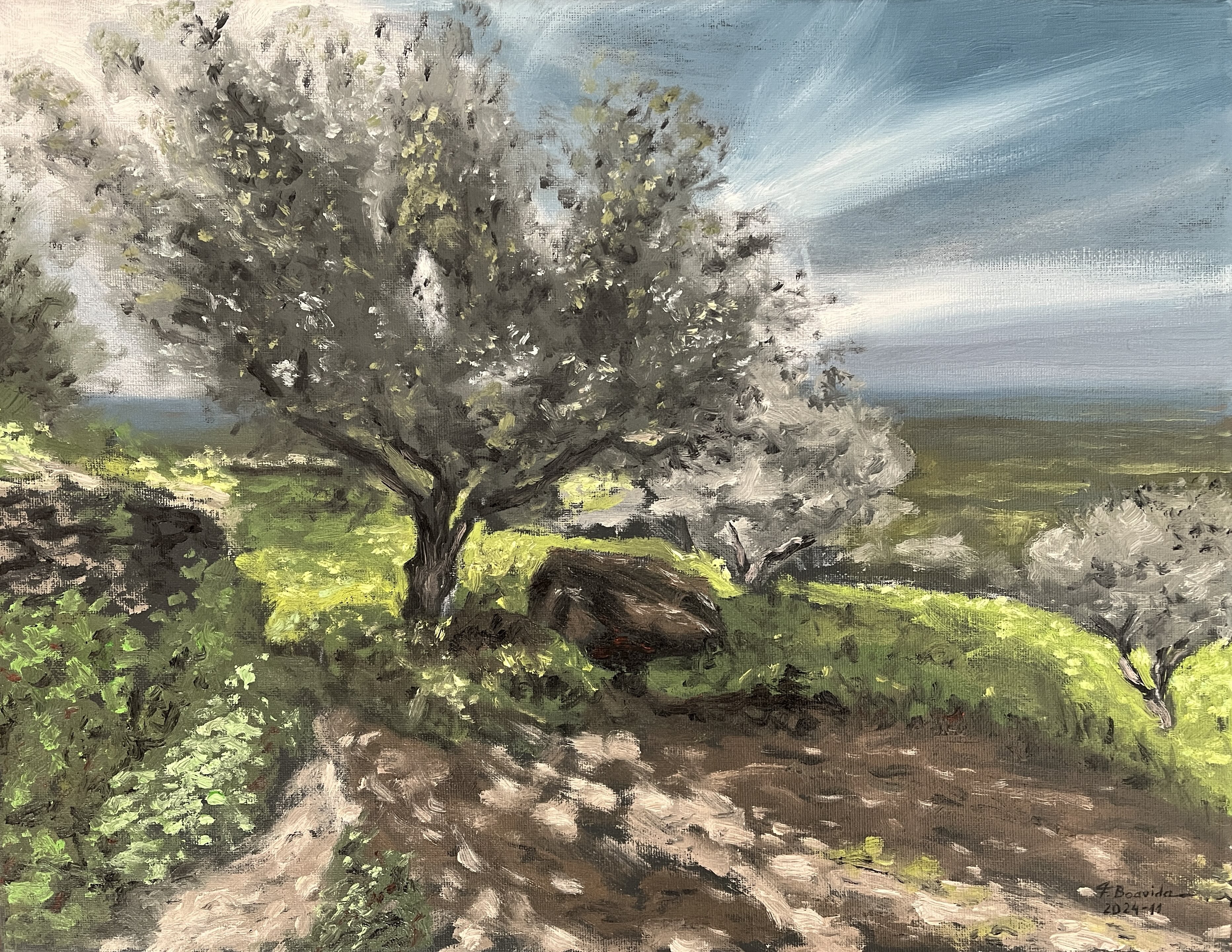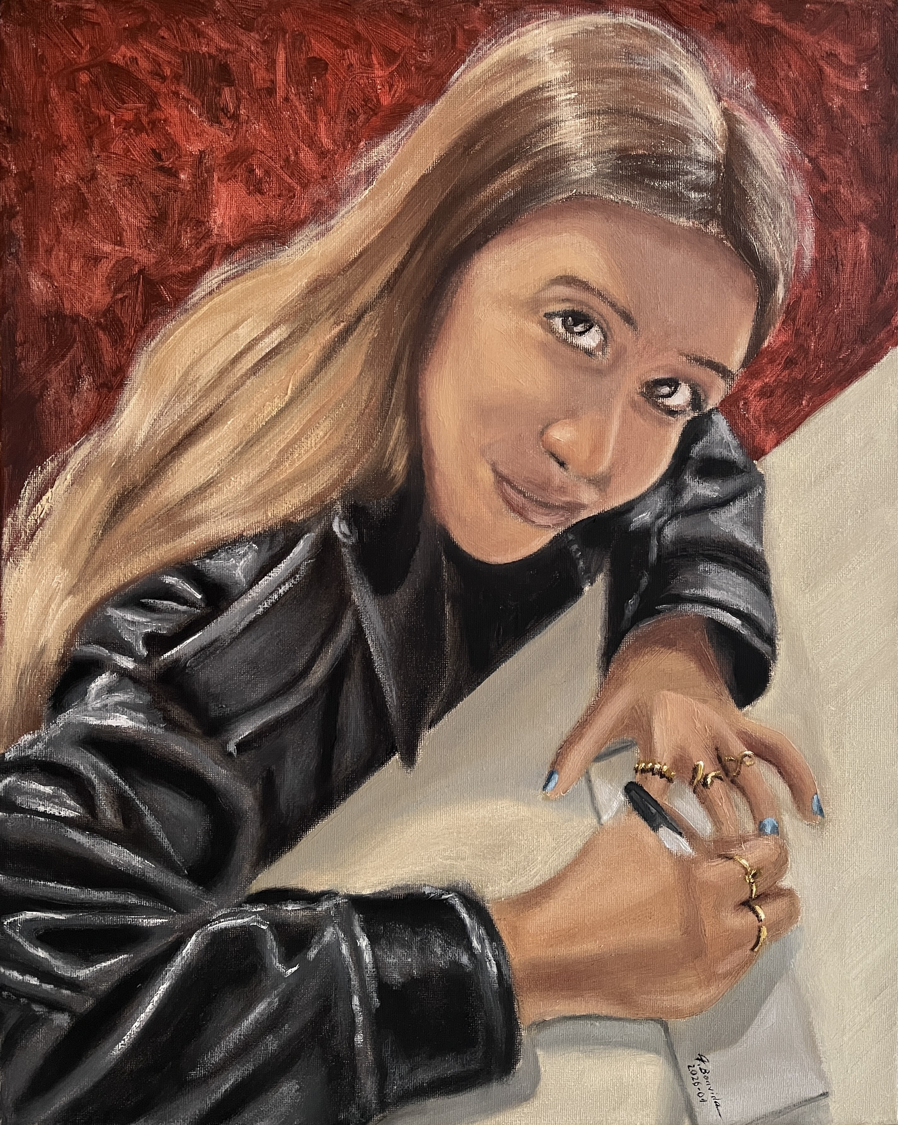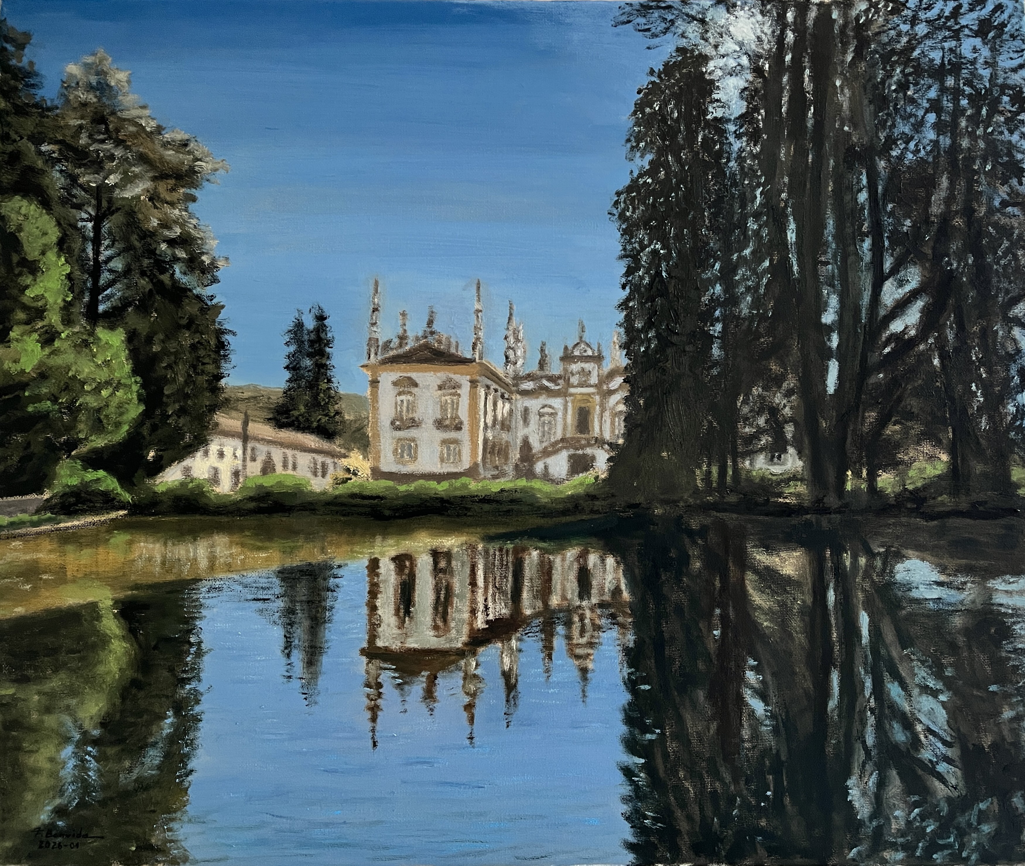 The lost earring. 50 cm x 40 cm, March 2026Quiet strength. 40 cm x 50 cm, February 2026St. James's Park, London. 27 cm x 35 cm, February 2026Malhao Beach. 27 cm x 35 cm. February 2026Reflections. 50 cm x 60 cm, January 2026The rings. 50 cm x 40 cm, January 2026Valley. 23 cm x 30 cm, January 2026Tower Bridge. 40 cm x 50 cm, December 2025Helen and Paris. 70 cm x 50 cm, December 2025Alone. 50 cm x 60 cm, November 2025Almudena Cathedral, Madrid. 50 cm x 40 cm, November 2025Garden. 30 cm x 40 cm, October 2025St. Paul's cathedral, London, 50 cm x 40 cm, October 2025Red-haired woman. 50 cm x 40 cm, October 2025Mountain path. 30 cm x 40 cm, July 2025Dried fish seller, at Nazaré. 35 cm x 27 cm, May 2025Beach path. 27 cm x 35 cm, April 2025Sunlit path. 27 cm x 35 cm, March 2025Moliceiro boat. 70 cm x 50 cm, March 2025At the gate. 70 cm x 50 cm, January 2025Olive tree at Penamacor castle. 35 cm x 45 cm, November 2024Jacaranda trees in Campus 2 of the University of Coimbra. 60 cm x 50 cm, August 2024Portrait of Edward Hopper in 1902. 60 cm x 50 cm, December 2023Paseo del Prado, Madrid. 40 cm x 30 cm, November 2023Portrait of Tamara de Lempicka in 1931. 60 cm x 50 cm, October 2023Boats at Vila Nova de Milfontes. 60 cm x 50 cm, February 2023Orange sky. 40 cm x 50 cm, February 2023Silvery sea at Vila Nova de Milfontes. 40 cm x 50 cm, December 2022Garden at the Calouste Gulbenkian Foundation, Lisbon. 45 cm x 35 cm, September 2022Baby dog Bart. 27 cm x 35 cm, April 2022The village of Monsanto, Idanha-a-Nova. 70 cm x 50 cm, March 2022Camellia house, in Arouca. 50 cm x 60 cm, September 2020Garden porch at Ourém castle. 60 cm x 50 cm, September 2020Amsterdam. 60 cm x 80 cm, August 2020Portimão riverside at dusk. 50 cm x 60 cm, August 2019Mother and son. 50 cm x 40 cm, May 2019Grand Place, Brussels, at night. 40 cm x 50 cm, April 2019Chair in the artist's house. 50 cm x 40 cm, January 2019