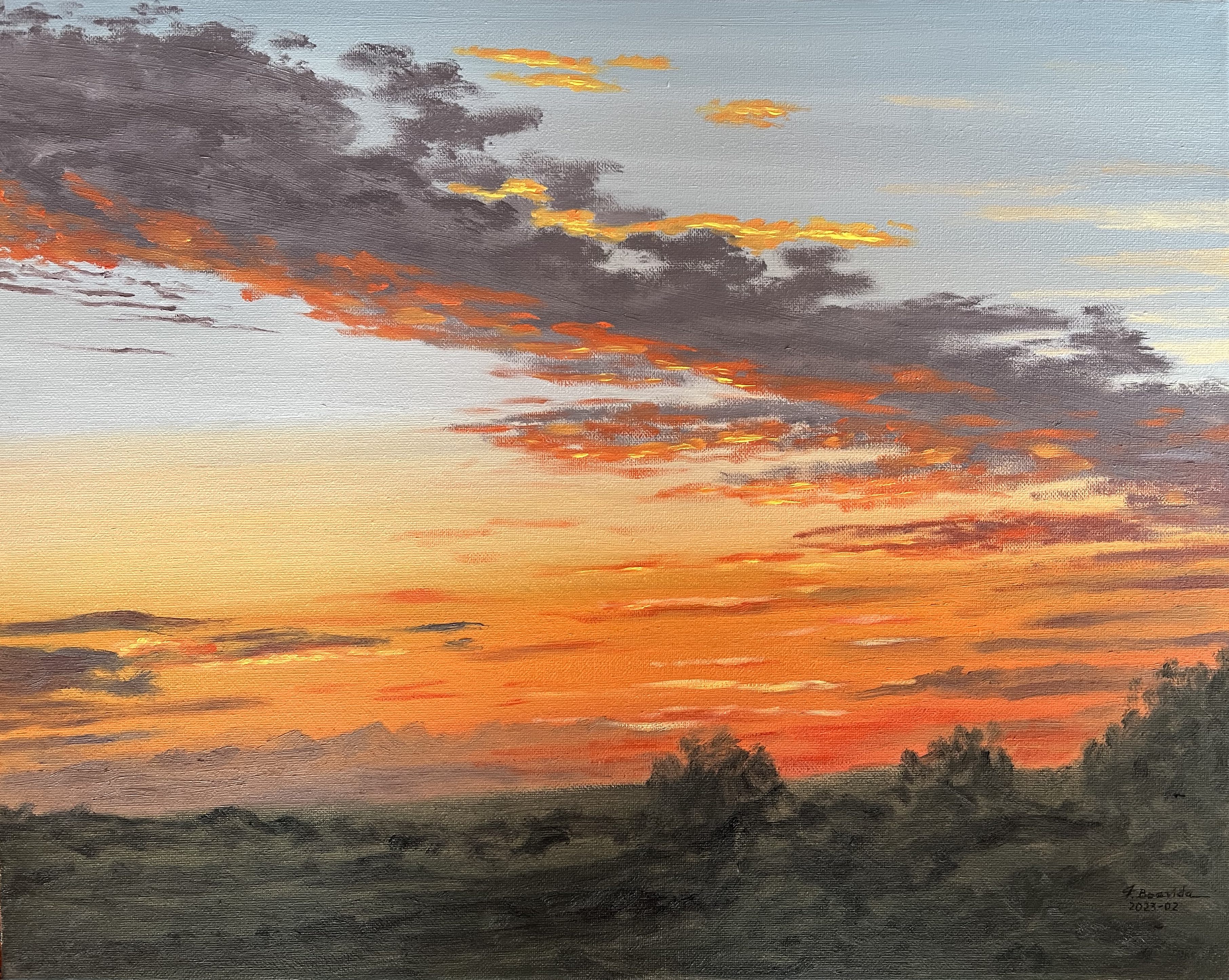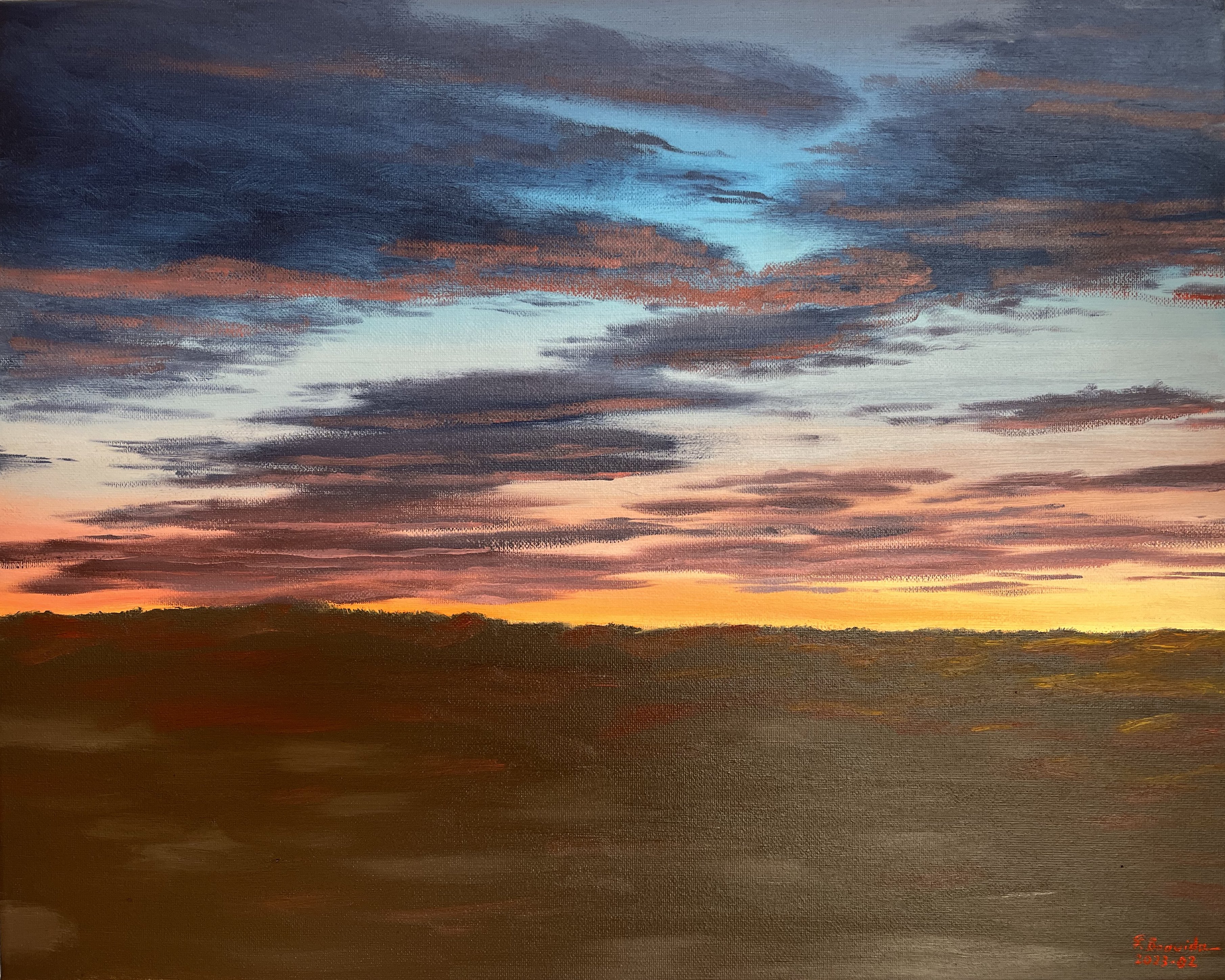 Grey sky. 40 cm x 50 cm, February 2023Violet sky. 40 cm x 50 cm, February 2023Red sky. 40 cm x 50 cm, February 2023Orange sky. 40 cm x 50 cm, February 2023Purple sky. 40 cm x 50 cm, March 2023Dark sky. 40 cm x 50 cm, March 2023Grey-blue sky. 40 cm x 50 cm, March 2023Greenish-yellow sky. 40 cm x 50 cm, March 2023Sunset at Ericeira. 50 cm x 80 cm, April 2023Orange-blue sky. 40 cm x 50 cm, April 2023Burning sky. 40 cm x 50 cm, April 2023Brownish sky. 40 cm x 50 cm, June 2023Yellow-orange sky. 40 cm x 50 cm, June 2023Sunset at Casal da Estrada (Condeixa). 50 cm x 70 cm, March 2024Foggy dusk. 50 cm x 70 cm, September 2021